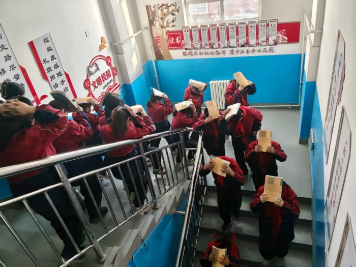 活动现场,指导组向师生发放了地震科普布袋,并布置科普展板。在应急演练环节,随着第一声警报声响起,老师迅速引导学生就地避险,学生立即蹲至课桌下方,并用双手护住头部;第二声警报响起后,全体师生按照预定疏散路线,快速、有序撤离至操场安全区域,各班级及时清点和上报人数。整个演练过程规范有序、衔接顺畅,有效检验了学校应急预案的可行性和师生的应急反应能力。