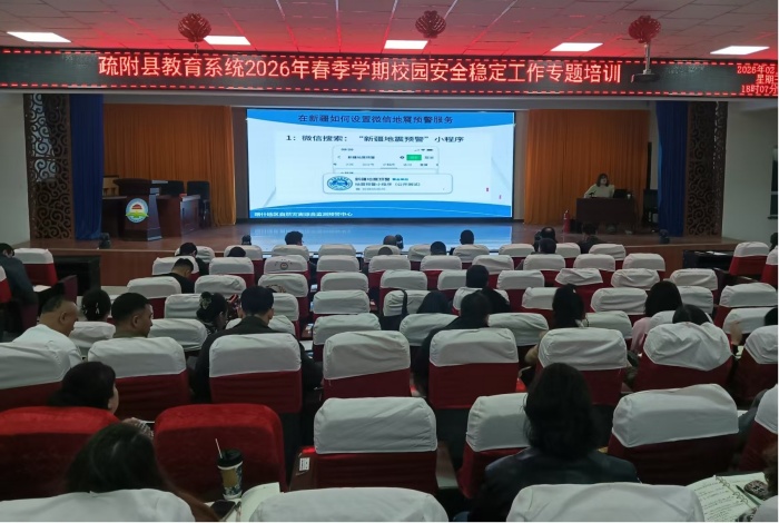 春季开学伊始,喀什地区自然灾害综合监测预警中心赴疏附县开展2026年春季学期校园防震减灾专题宣讲,疏附县中小学及幼儿园相关负责人共185人参加。