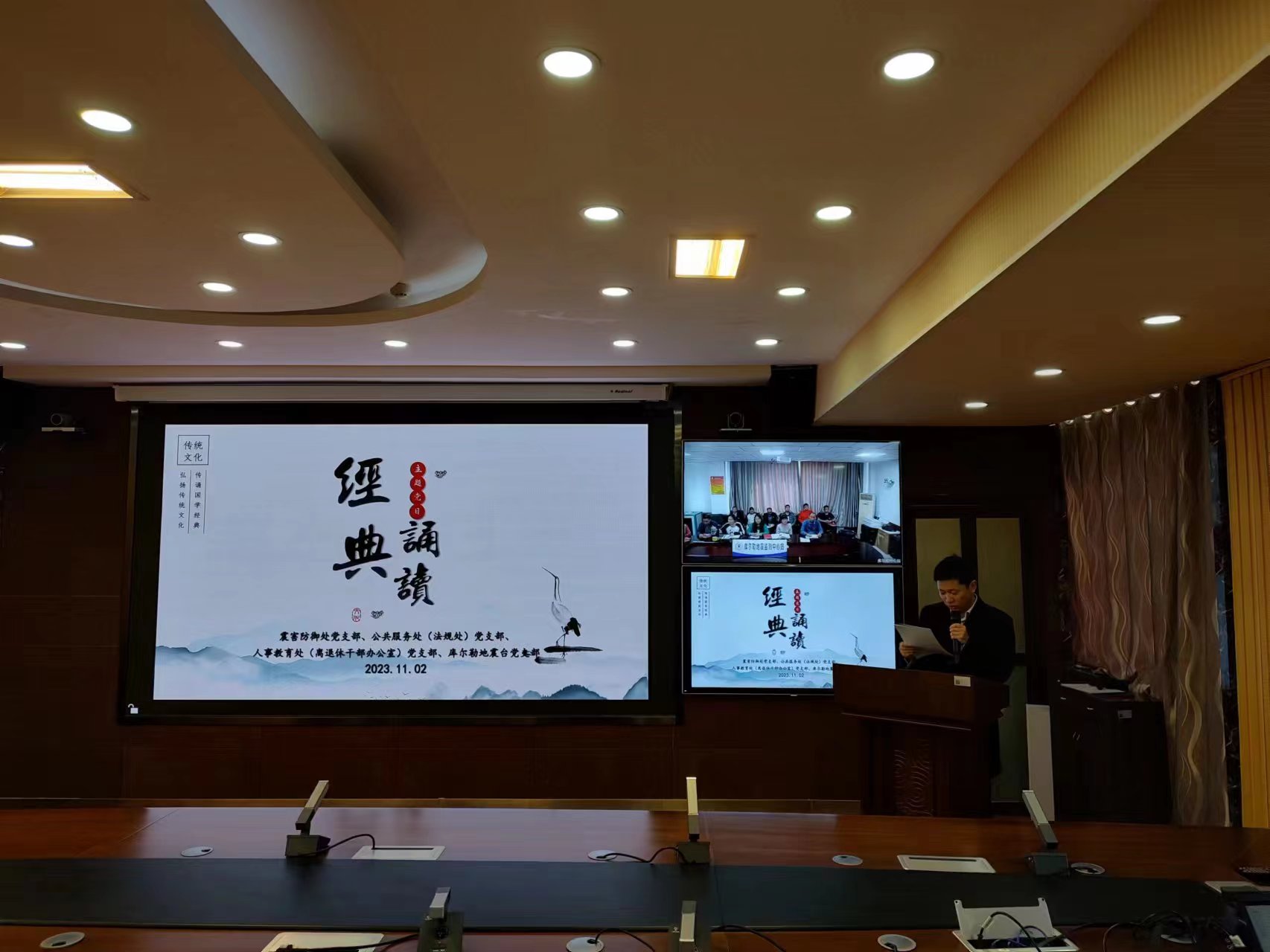 为传承弘扬中华优秀文化,11月2日下午,震害防御处党支部、公共服务处(法规处)党支部、人事教育处(离退休干部管理办公室)党支部、库尔勒中心站党支部联合举办“中华经典诵读”活动。