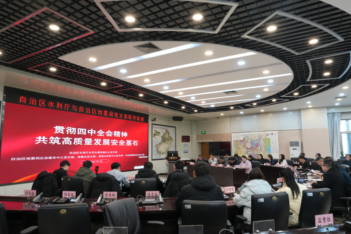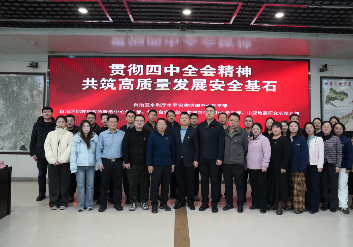 自治区水利厅水旱灾害防御中心党支部、自治区地震局应急服务中心党支部、监测与信息中心党支部、新疆地震台党支部、中亚地震研究所党支部共同围绕党的二十届四中全会精神开展专题学习,深刻领会“高水平安全是高质量发展的前提”的核心内涵;在交流研讨环节,各党支部结合自身职责就应急指挥技术支撑行业协同应急、新疆地震预警和社会服务、地震预警与烈度速报能力建设、水库大坝变形监测等内容分享经验与需求,并就党建与业务融合、水利工程地震安全保障等议题达成了共识。