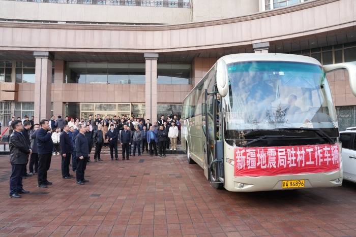 3月24日,新疆地震局2026年度驻村工作队员整装待发,局党组全体成员为驻村队员送行。