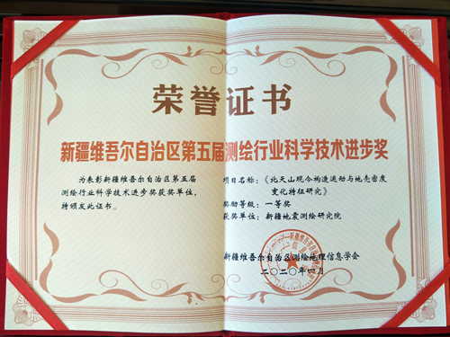 新疆地震测绘研究院获“第五届测绘行业科学技术进步奖”